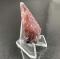 This rare piece displays a swirled pattern of Plum, Boysenberry, specks of Quartz with some purples and blues. Primary colors are variants of rusty reds, boysenberry, and raspberries with milky white quartz. The stone is polished to a high luster both front and back. The back is flat ready for mounting.