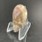 A fancy hand cut and polished semi-precious cabochon made from Rincon Crazy Lace rough. As with all crazy lace, the stone is a one-of-a-kind piece of art with crazy lace patterns traveling in one direction down the face; fortified, pink, brick red, peach, brown, cream bands with gold and brown colored trim. The cabochon is cut in a Pear with both a lower and upper girdle to facilitate easy setting. The specimen is polished to a high vitreous luster.