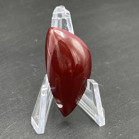 Mookaite Jasper is a highly prized semi-precious stone from Australia. This Mookaite stone is a deep maroon red. The stone is cut in a small Sail shape with both a lower and upper girdle to facilitate easy stone setting. The stone measures 1.30 x 0.62 x 0.24 inches. The specimen is polished to a high vitreous luster.